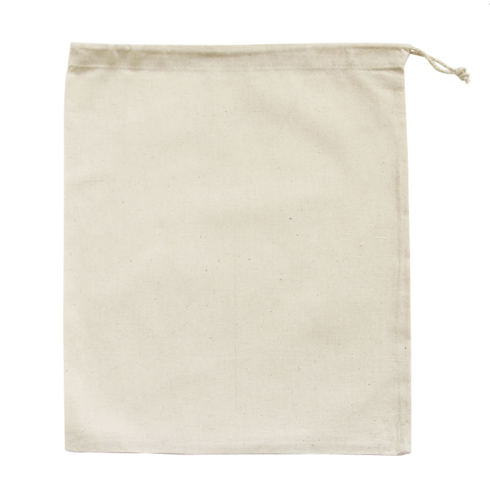 This drawstring calico bag is ideal for carrying fresh produce or wholefoods from the bulk bin. Or it could be a shoe bag, or for presenting gifts, or as a simple toiletries bag. It's convenient, washable, reusable and, at the end of it's life, it's also biodegradable.
